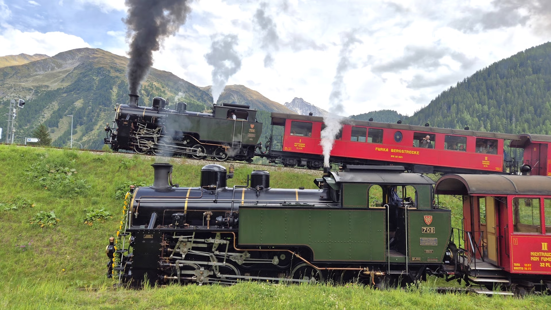 Neu ist 2025 ein dritter Dampfzug ab Realp 11.20h (nur 17.Juli bis 17. August)