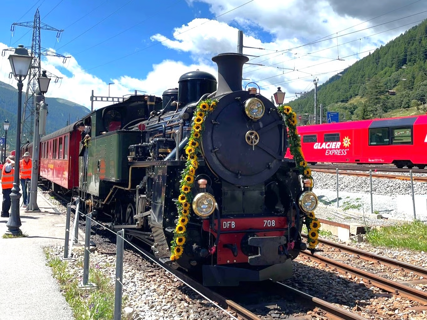 17. Juli 2025: Einweihungsfahrt der HG 4/4 708 mit dem fahrplanmäßigen Dampfzug ab Realp