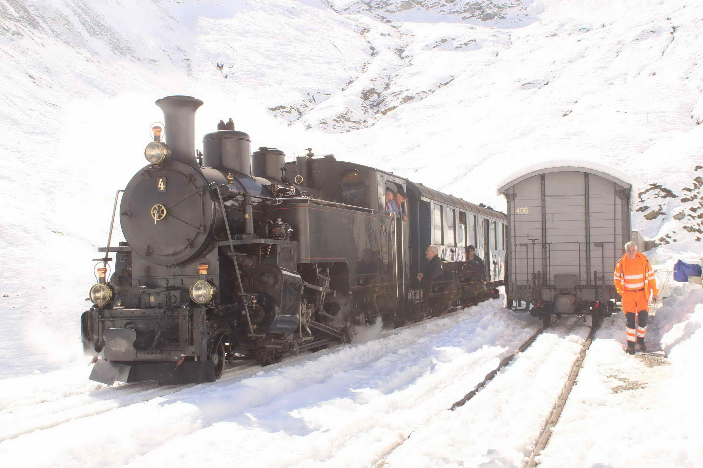 Am vorletzten Fahrtag der Saison startete Lok FO4 zu ihrer Reise über den Furkapass.