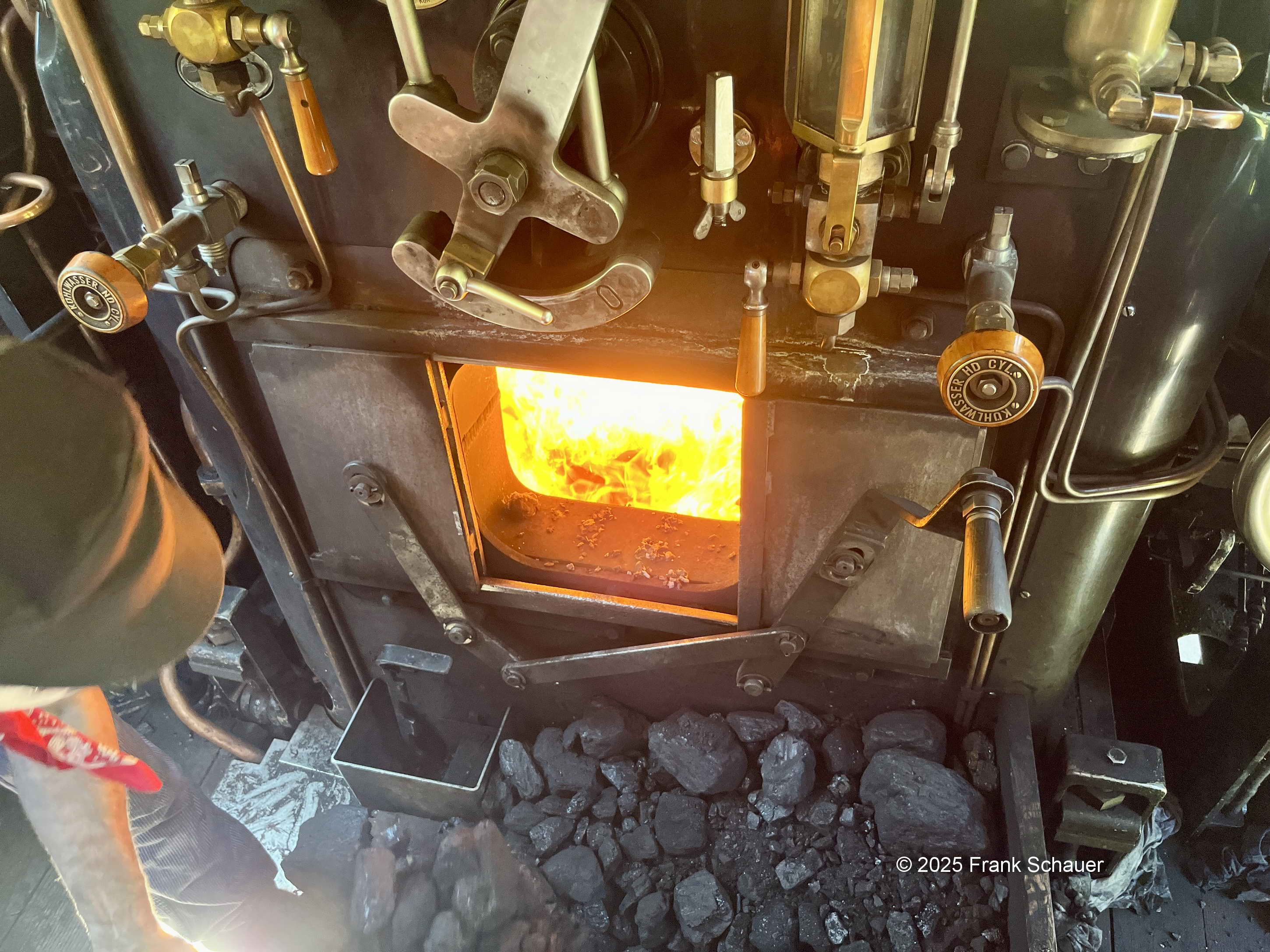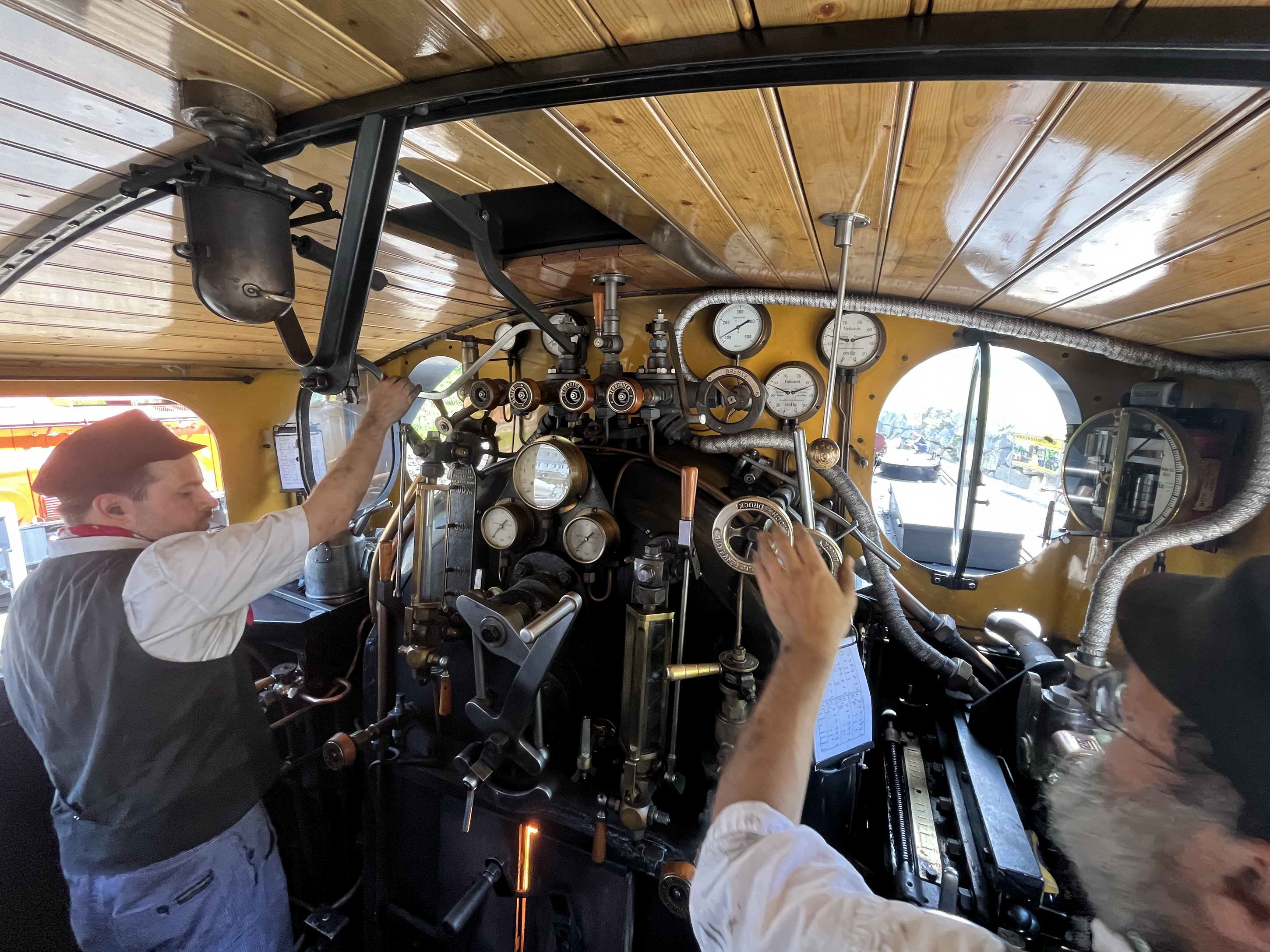 Dem Lokführer über die Schulter geblickt. Dies ist möglich von der Plattform des ersten Wagens hinter der Lok
