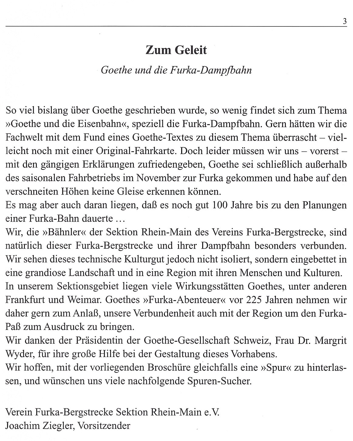 Neben einem Nachwort von Prof. Adolf Muschg gibt es auch ein Geleitwort unter dem Titel Goethe und die Furka Dampfbahn,